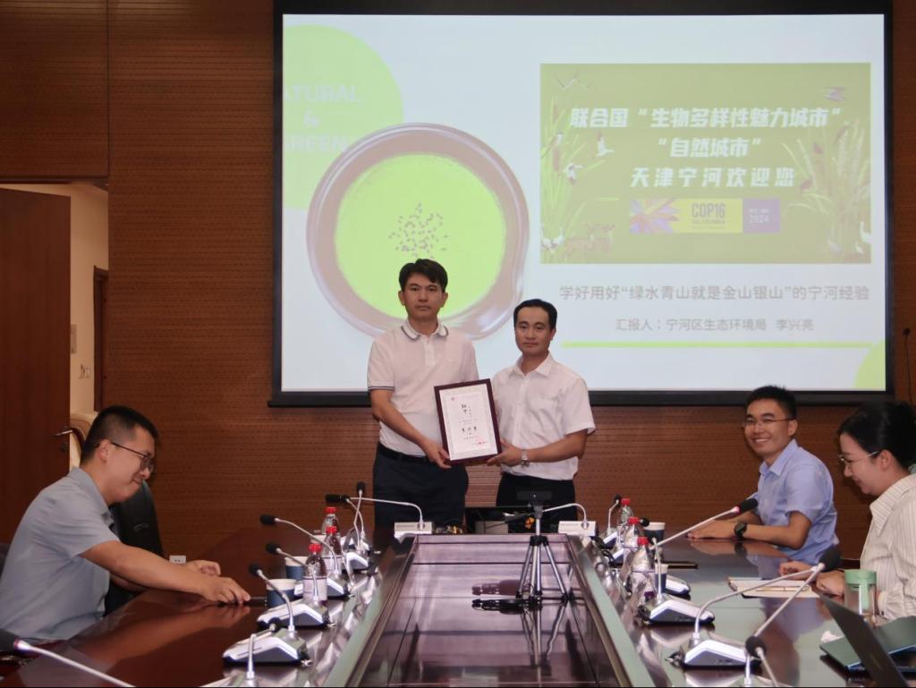 紧接着,李兴亮局长简要介绍了宁河区生态环境局近年来取得的工作成效。近年来,宁河区先后获评“国家生态文明建设示范区”、入选联合国“生物多样性魅力城市”和世界“自然城市”行列。李兴亮局长为我们讲解了获奖背后的过程与经历。