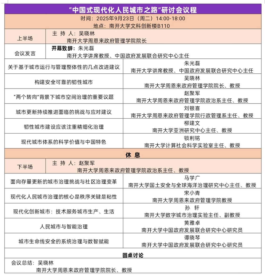 “中国式现代化人民城市之路”研讨会议程