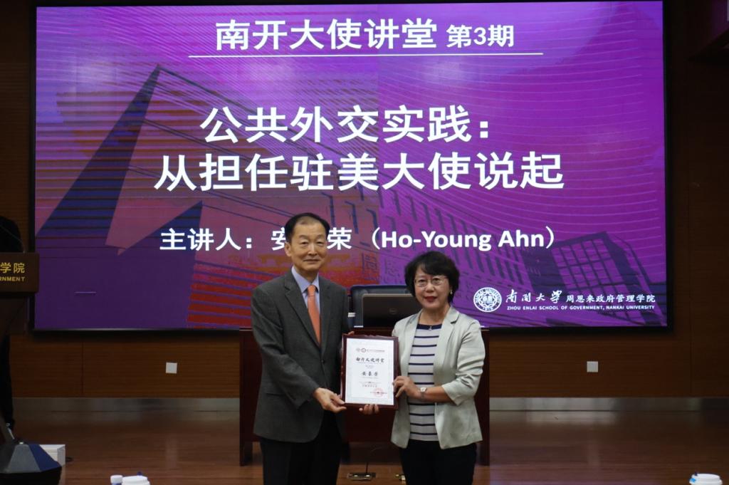 “南开大使讲堂”第3期于政府管理学院128报告厅举行。韩国前驻美大使安豪荣以“韩国在美国的公共外交”为主题,为全校师生带来一场精彩的讲座。政府学院党委书记王慧研究员、91国产