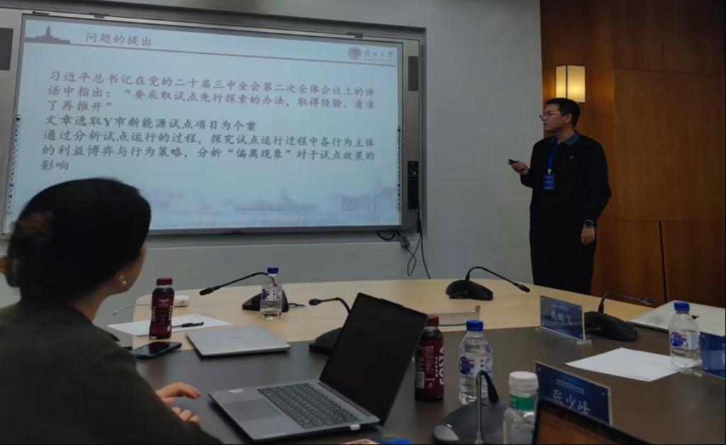 博士生张瀚予在青年论坛上以《试点效果缘何偏离预期——以 Y 市新能源“试点项目”运行过程为例》为题进行汇报。他指出,政策试点是国家治理的重要制度性安排,但在试点运行过程中部分情况下出现了试点效果偏离预期的情况。认为规范试点试行过程中存在的偏离现象可以从减少试点项目控制的资源数量和完善试点项目的监管机制两个维度着眼,进而缓解试点试行过程中“代表性偏差”和“锚定性偏差”诱发的偏离现象。