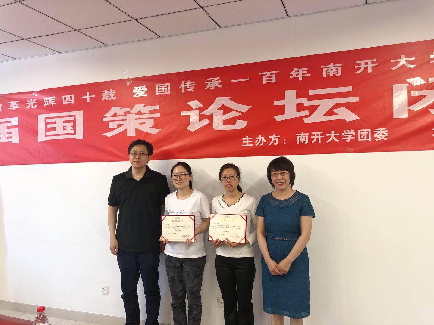 王慧老师宣读了本次国策论坛征文获奖名单,在本次征文活动中,共有13名同学获奖,王慧老师和孙涛教授为他们颁奖并合影留念。