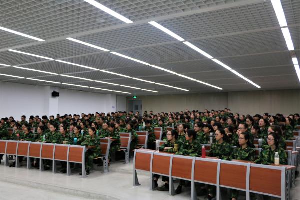 军训团二营八连于公共教学楼进行三湾改编主题体验式学习活动。连队指导员及全体参训学生参与活动。