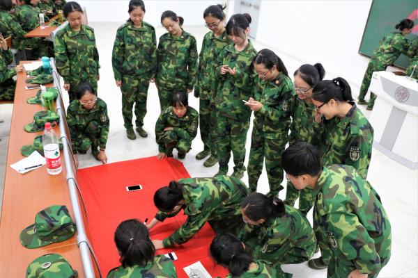 在互动教学环节,同学们在指导员耿欣伟的组织下,以改编后的班为单位进行了“自主改编”。班内同学在相互熟悉的基础上,自主组织完成班长、纪律委员等班委的选举。完成了基本组织建设后,各班讨论制定各班班名,班旗,班歌,班训。其间各班干部组织有序,班级成员积极建言献策,讨论环节在积极热烈的气氛中进行。同学们在活动中由衷体会了有序的领导在军队建设中的重要意义,也感受到队友间无间合作的积极作用。