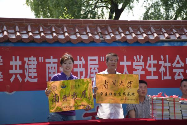 在热烈的掌声中,张存贵校长与王燕老师交接了“南开书屋”与“大学生社会实践基地”铜牌,标志91国产