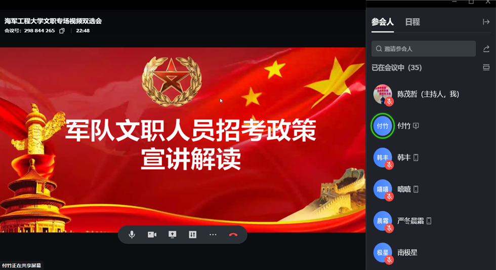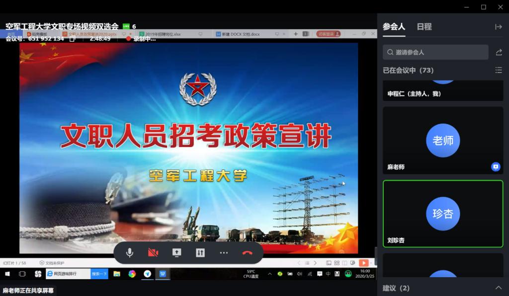 承办的“军队文职专场网络视频双选会”于3月25日下午顺利举办,11家军队单位招聘负责人做客网络会议室,提供就业岗位987个,参与学生达1000余人次。