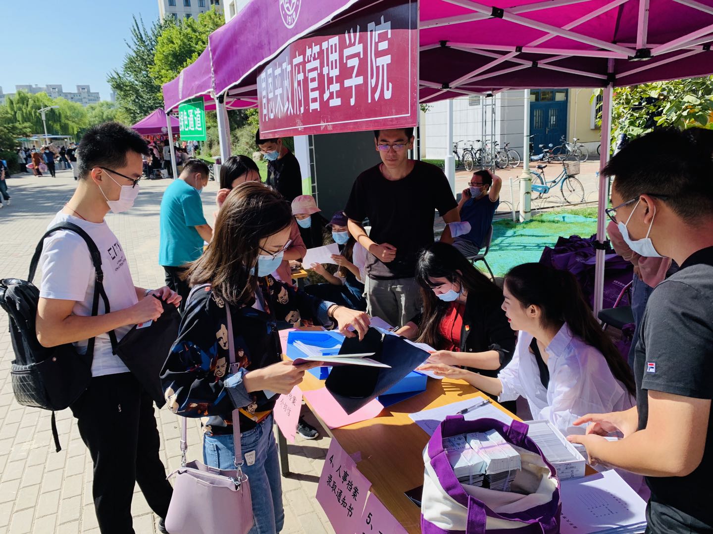 报到现场,新生们手持“公能南开 政因由你”的标语,用镜头记录下这难忘的瞬间,脸上的笑容展现了对未来学习生活的无限憧憬。学院为新生们准备了印有周恩来总理形象的院衫,在学生们成为南开人的第一天就将总理精神铭刻于心。印有“政府学院欢迎你”的口罩贴纸引来新生与家长们的阵阵好评,在疫情常态化阶段,政府学院以这种独特的方式表达了对新生的欢迎与关怀,并提醒新生严格遵守防疫规定,共同守护平安南开园。