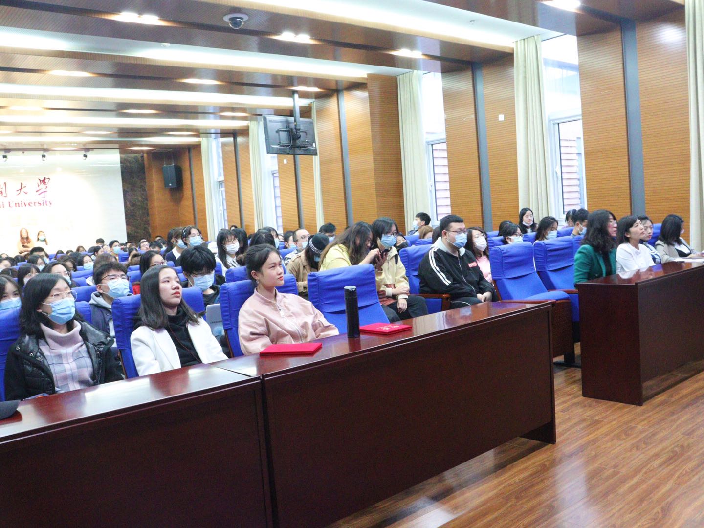 成功举办2021届就业推动会暨学生职业发展中心挂牌仪式。出席会议的有学院党委副书记兼副院长宋媛,学院团委书记、研究生辅导员杨晓颖,学院团委副书记、本科生辅导员陈佩其,本科生辅导员郑宗鹏,研究生辅导员王若瑶。会议由2019级国际关系专业硕士陈茂哲主持,近两百名毕业生参加。