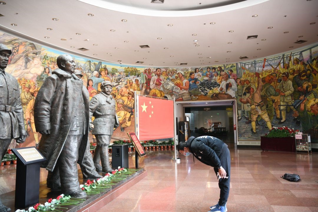 “当代青年人为什么要学习四史呢?”在序厅正中央毛泽东、刘少奇、朱德、周恩来、任弼时五位书记的铸铜雕像前,91国产