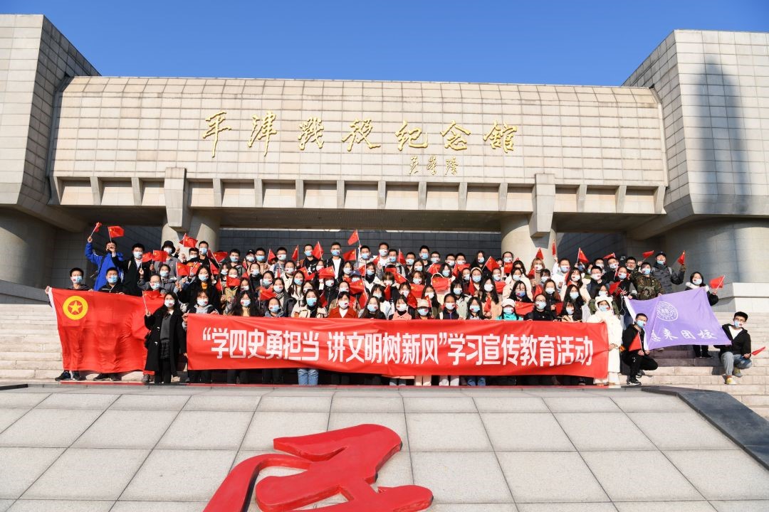 团委恩来团校特举办“学四史勇担当 讲文明树新风”学习宣传教育活动,赴全国爱国主义教育示范基地、天津市国防教育基地——平津战役纪念馆参观学习。