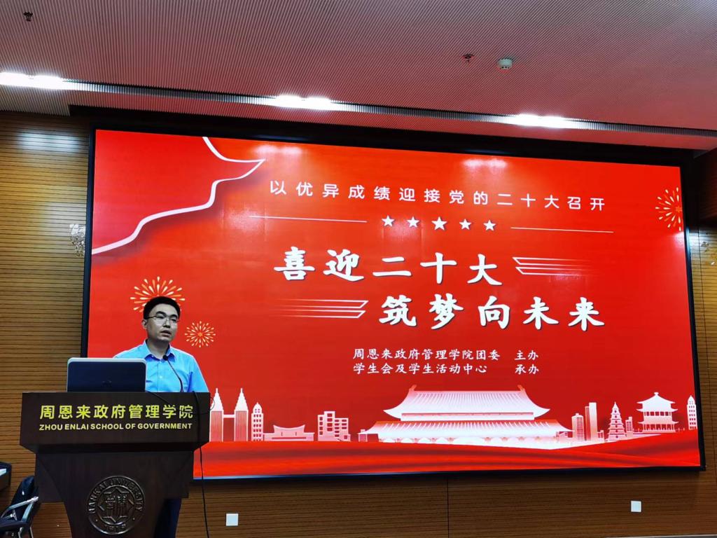 政府学院团委书记王修彦出席了本次演讲比赛并致辞。王老师在讲话中指出,世界正处于百年未有之大变局,这既给青年带来了新的机遇,同样也带来了新的挑战。并嘱咐同学们,作为新时代青年,必将“以志为先,以新为径,以苦为食”,以青春之名,喜迎党的二十大,在新时代不懈奋斗,筑梦未来。
