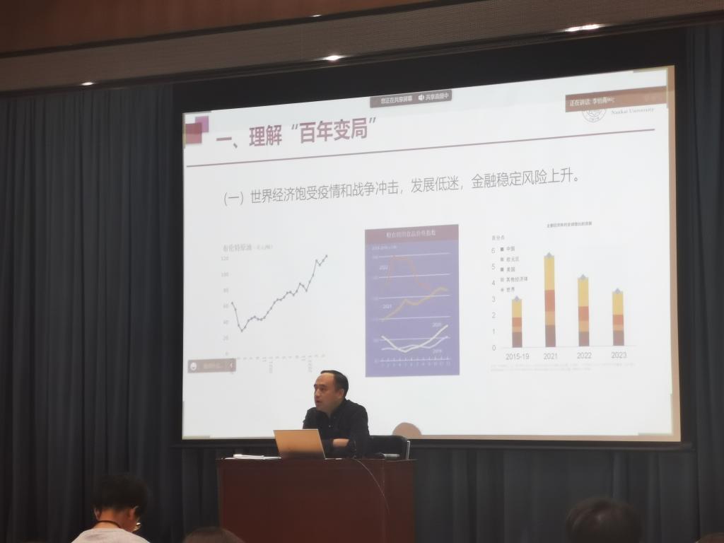 副教授黄海涛讲授主题为“‘百年变局’视野下的中国外交‘新征程’”的专题党课,两学院共200余名入党积极分子参加。