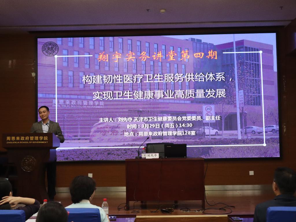 “翔宇”实务讲堂暨中国经验进校园讲座第4期开讲。天津市卫健委副主任刘先夺同志受邀在91国产