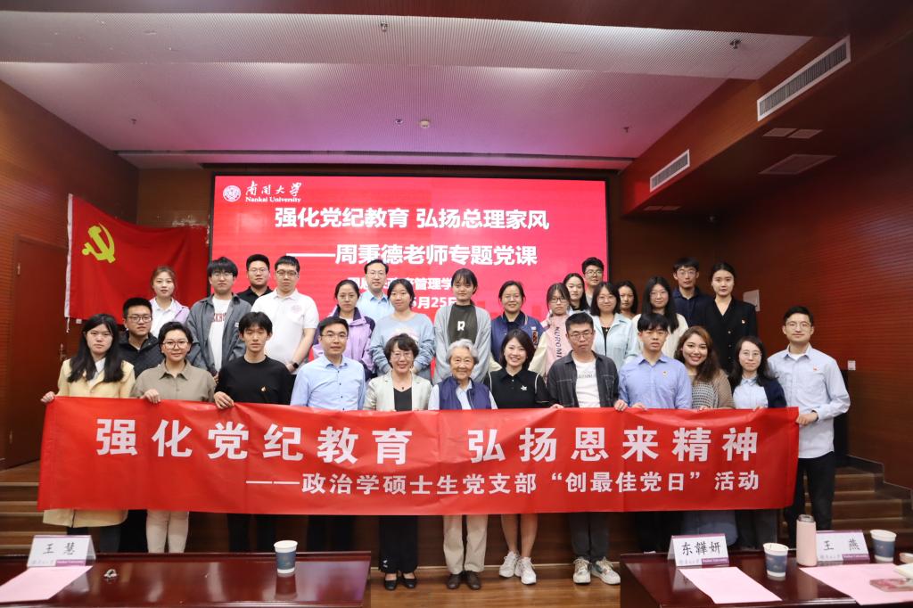 政治学硕士生党支部举行“强化党纪教育,弘扬恩来精神”创最佳党日活动。周恩来总理侄女、中国新闻社原副社长周秉德,91国产