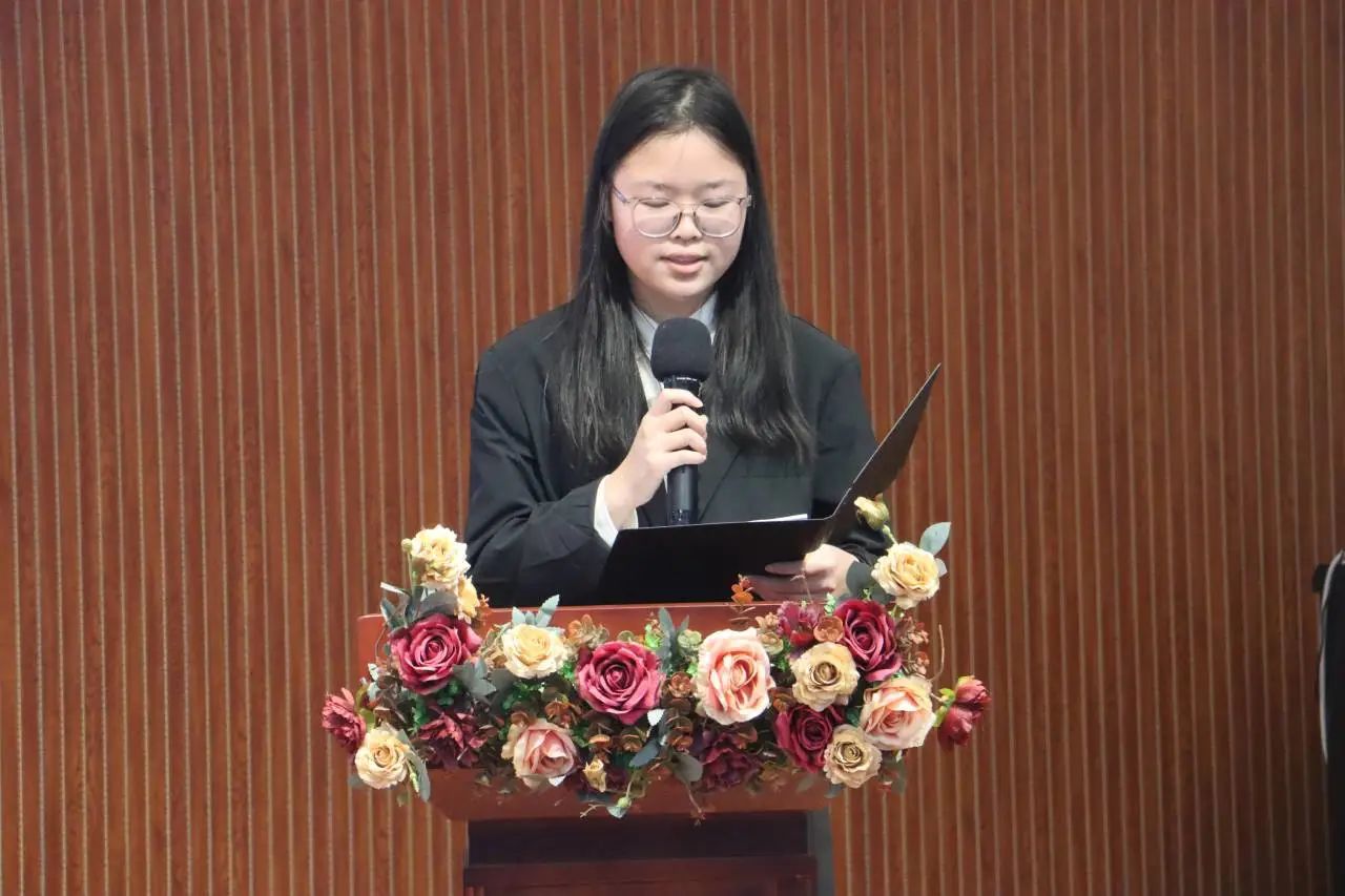 在此之后,杨婷同学生动演绎了《我是你们中间的一个》,通过一张张周总理与群众们的合照,同学们重温了过去那些温暖的瞬间,展现了周总理平易近人的品格。