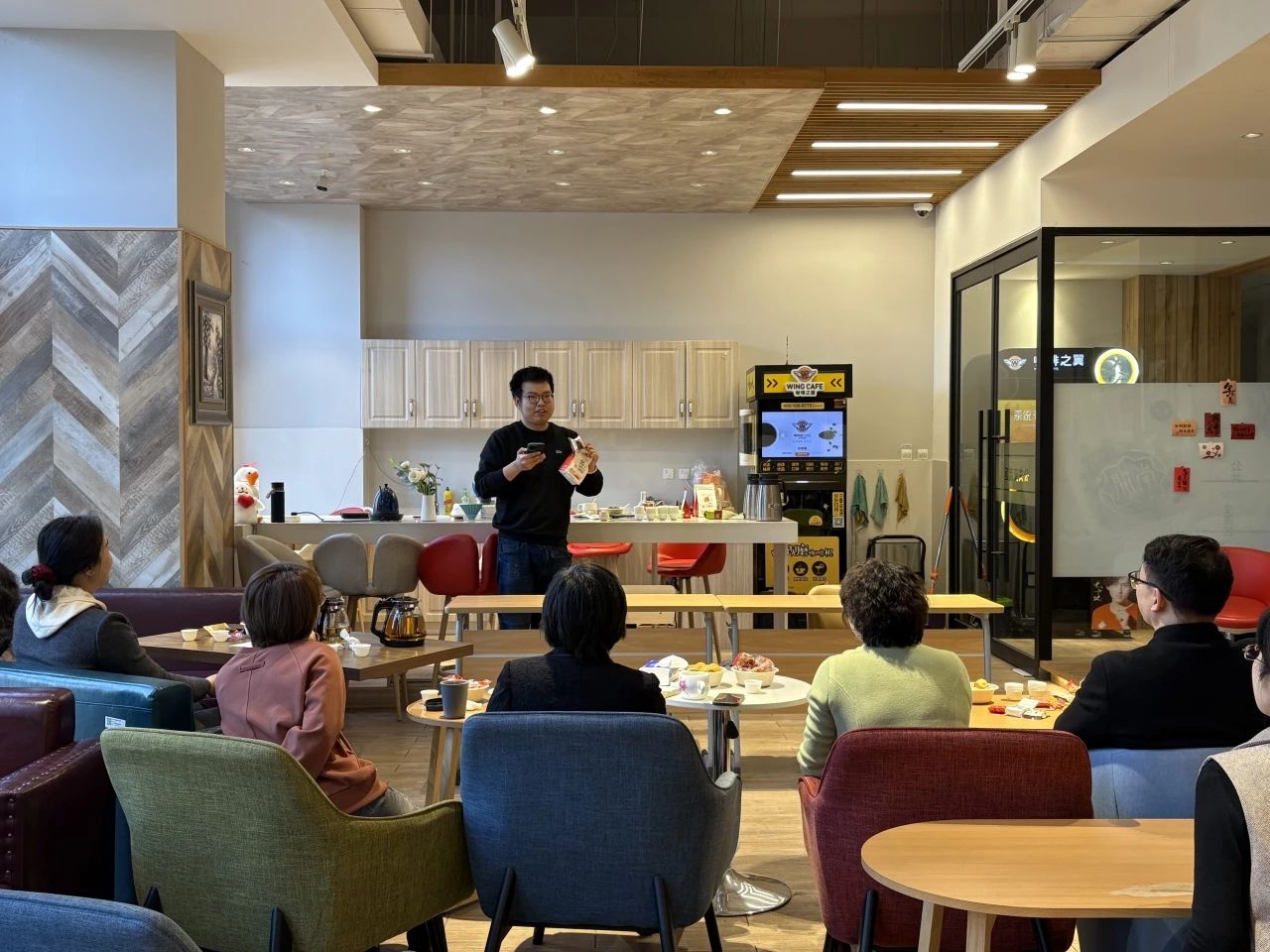 咖啡厅内茶香与咖啡香交织,笑语与琴韵共鸣。值此春意盎然之际,学院工会联合学院团委本科生学生活动中心精心策划的“茶香咖韵,共叙芳华”活动成功举行,师生齐聚一堂,以茶会友,以咖传情,在氤氲香气中共赴一场跨越东西方文明的优雅之约。