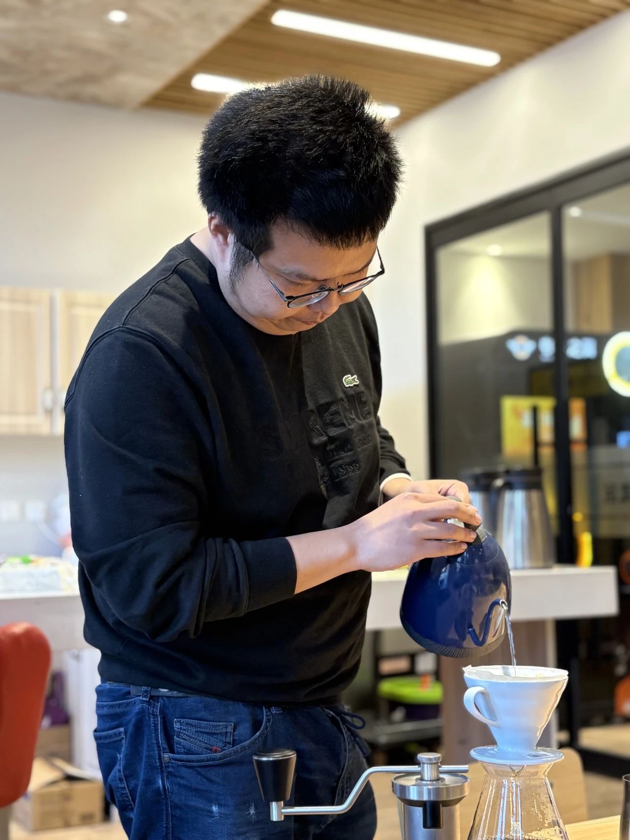 “手冲咖啡作为精品咖啡的一种,大部分时间使用的是新鲜的单一品种的咖啡豆,他的魅力之一在于人工阶段引入了误差,造成了同样的咖啡豆同样的水温不同的人不同的手法就会有不同的味道。”张立祥老师介绍了并演示了手冲咖啡后,将咖啡分享给各位老师,品尝不同烘焙不同产地品种的不同味道。