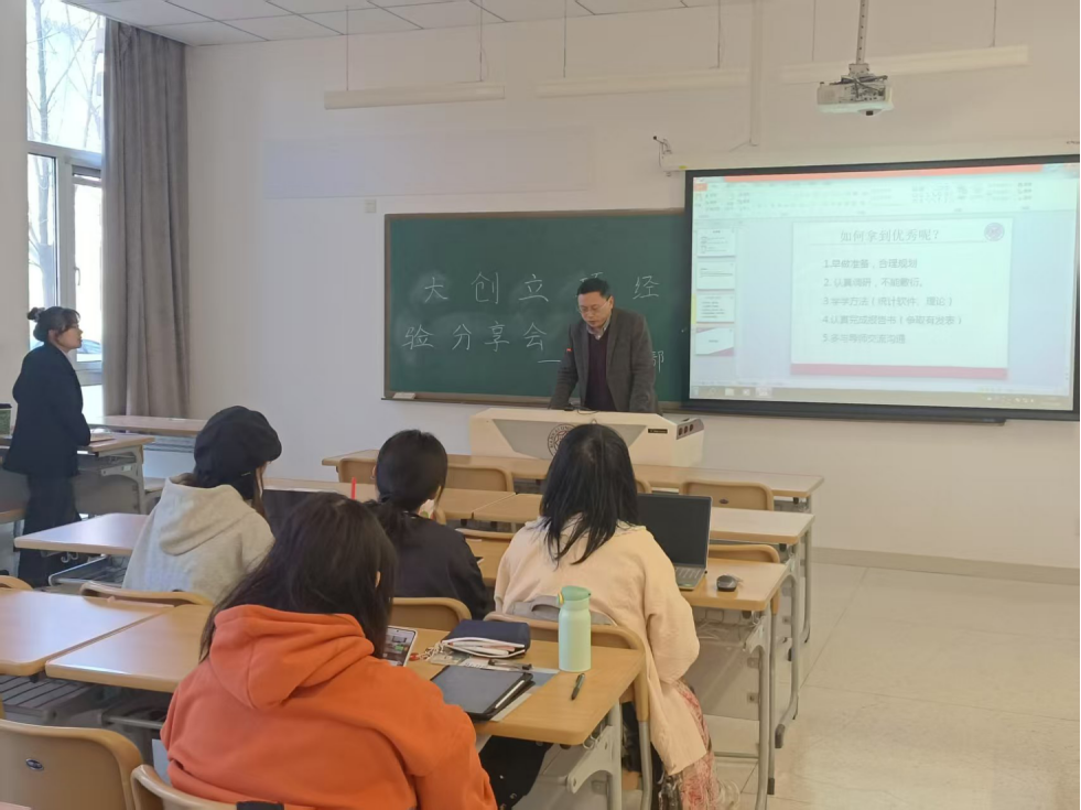 135教室召开。在本次大创立项经验分享会上,雷涛老师、许晓老师以及刘子淇学姐、李志恒学长从案例研究、大创流程和申报技巧等角度进行了相关经验分享。