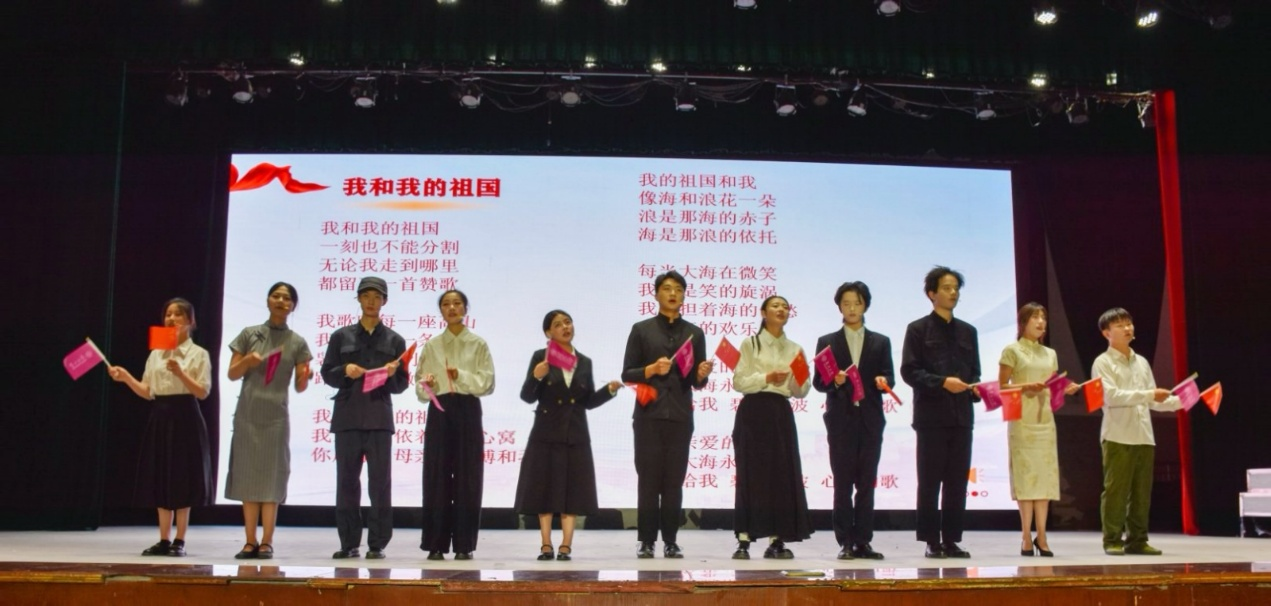 演出最后,全体演职人员上场齐诵《这盛世,如您所愿》,带领全场观众合唱《我和我的祖国》。现场氛围在歌声中进入高潮,在场观众都沉浸在感人至深的氛围中,总理的崇高精神和动人风采在每一个同学心中都留下了深刻印记,薪火相传,永不停歇。