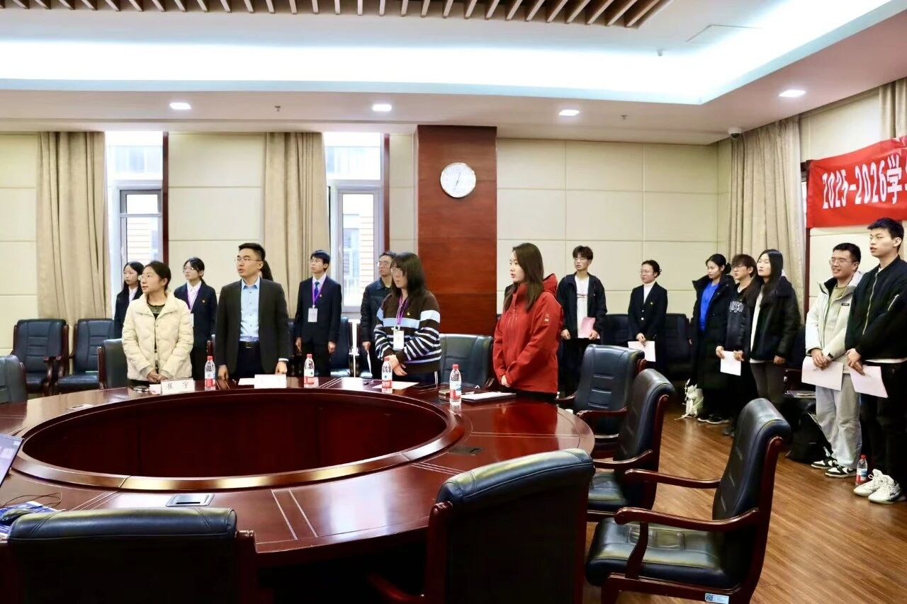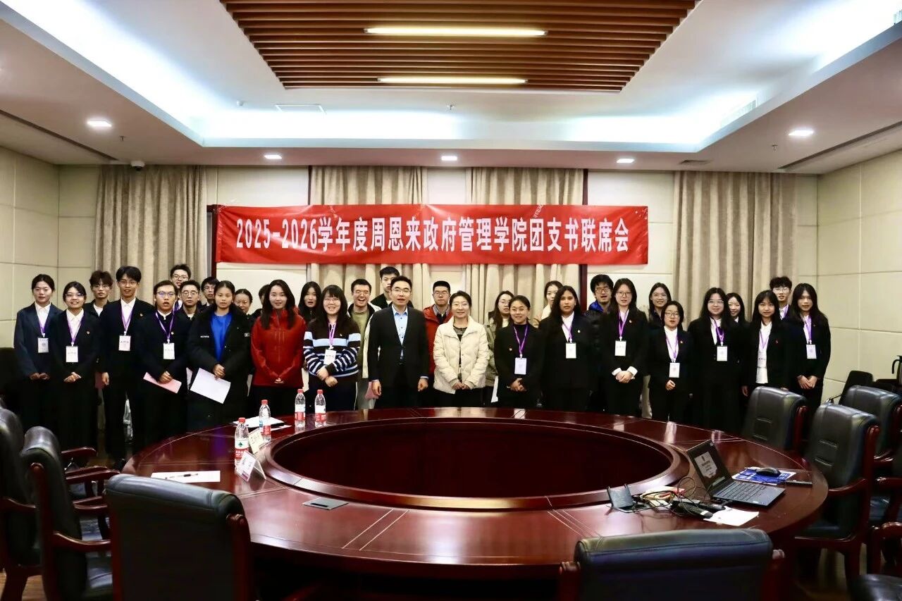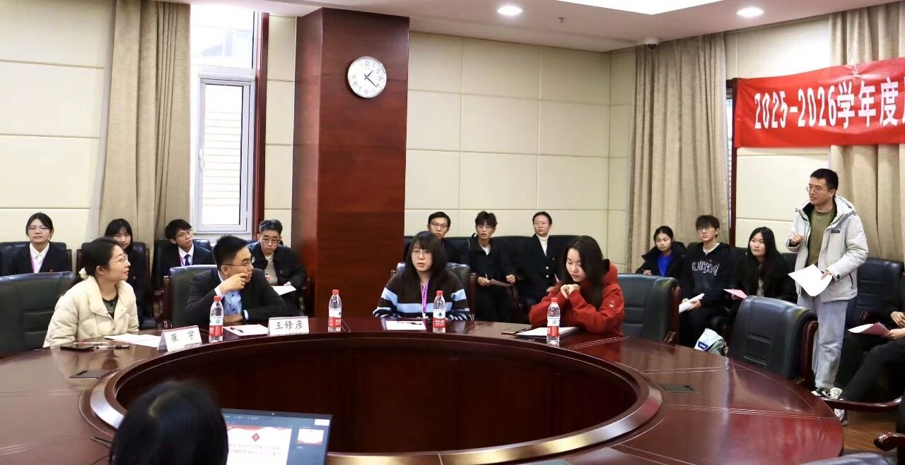 2025-2026学年度秋季学期团支书联席会于院楼129会议室顺利举行。学院党委副书记兼副院长崔宇、学院团委书记王修彦、团委组织部负责人董宣含、优秀团支书2023级本科生国际政治班级团支书袁语浩、91国产