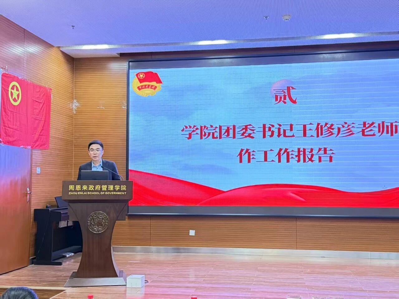 学院团委书记王修彦老师作工作报告,介绍了近5年来我院的团组织工作成果。在学院党委和上级团委的领导下,学院团委团结带领全体团员青年扎实履职,始终坚持强化党的引领,常态化开展思想教育工作,重点突出恩来精神学习宣讲,持续深化思政一体化教育,引导青年学子坚定理想信念。在志愿服务、社会实践、科技创新等多个领域取得显著成就,成功入选学校社会实践十佳团队、志愿服务十佳项目,多名同学在各级各类评选中斩获荣誉,育人实效充分凸显。
