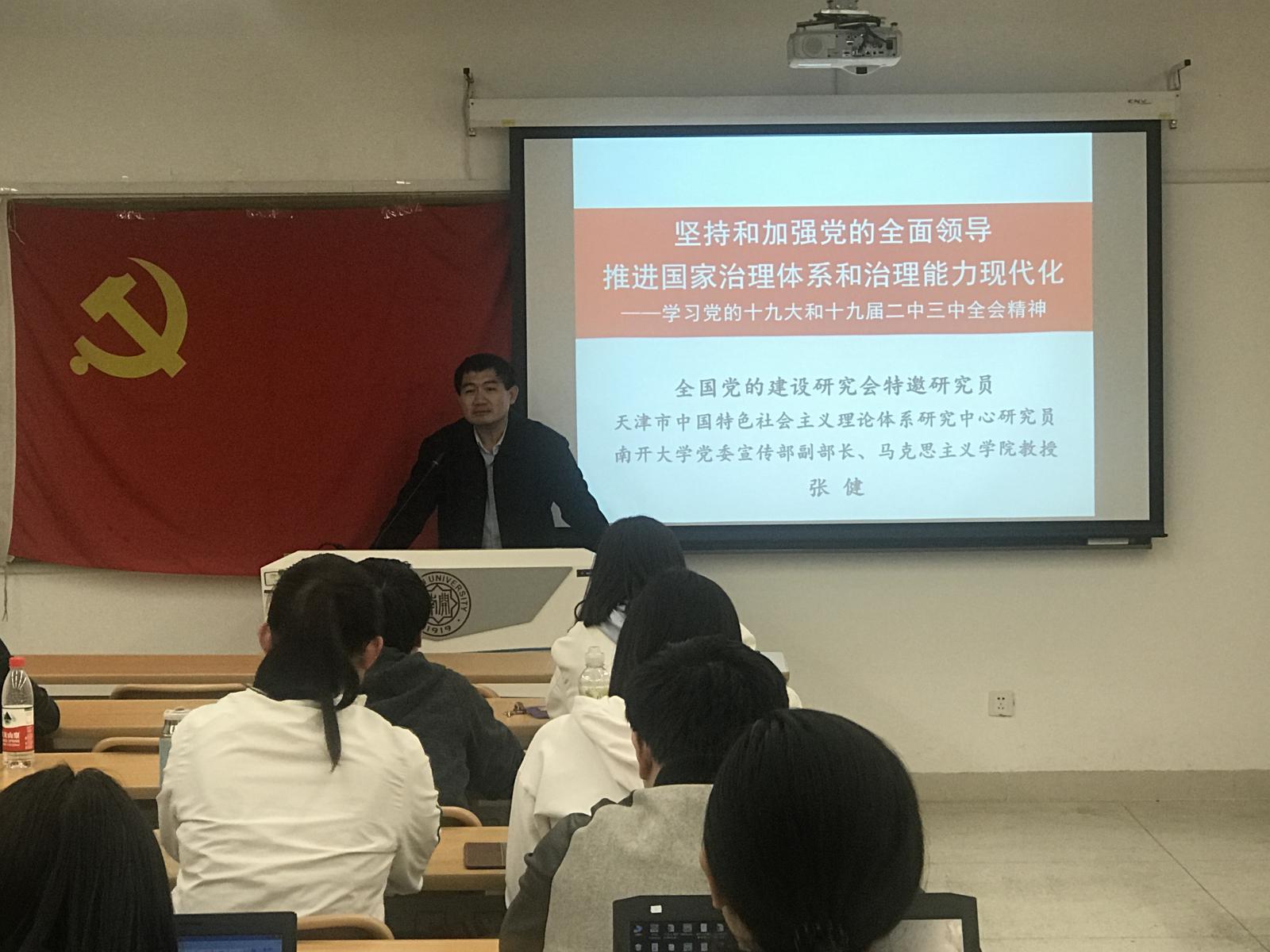 党委宣传部副部长、马克思主义学院教授张健为学员主讲了一堂学习党的十九大和十九届二中、三中全会精神的主题党课。