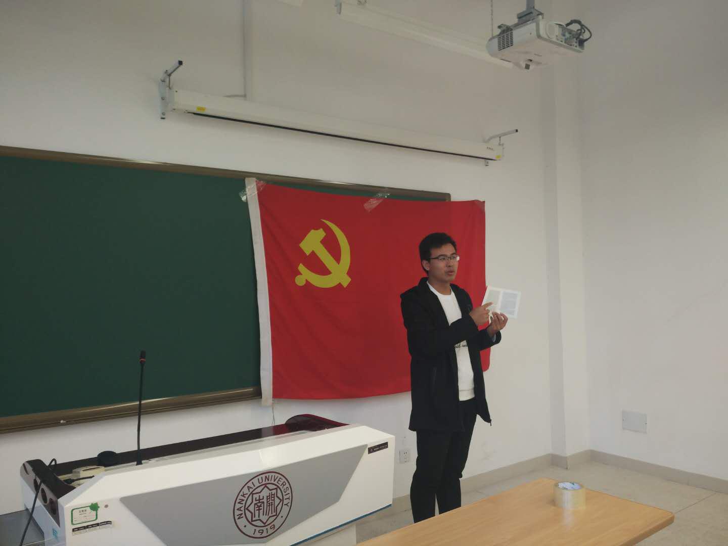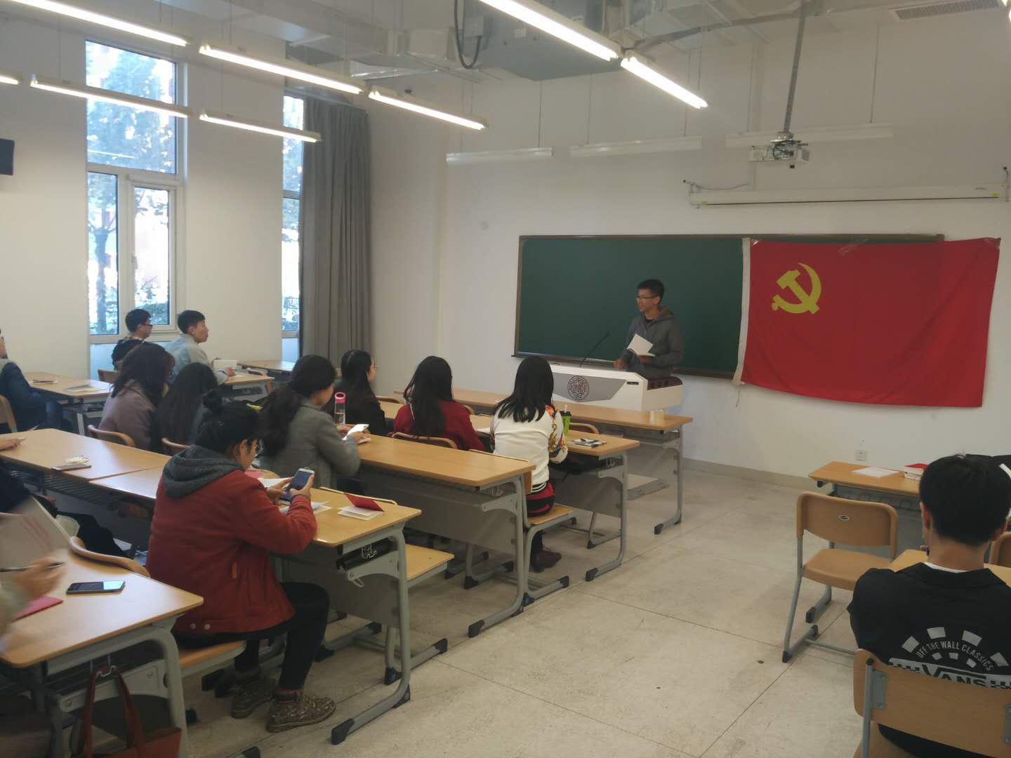 2016级社会学硕士研究生党支部和2016级政治学硕士研究生党支部为了深入贯彻学习十九大精神,联合在政府学院楼134室召开主题为“高举党旗跟党走,凝心聚力中国梦”的学习贯彻十九大精神的活动。