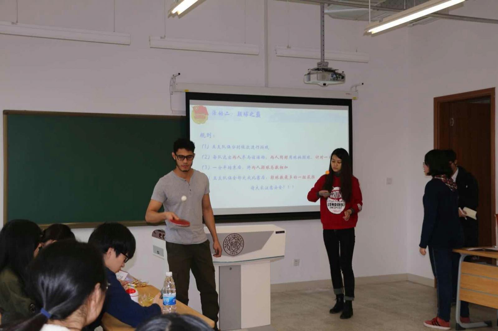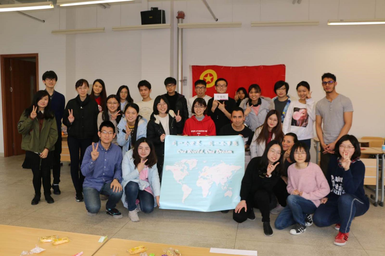 2016级本科生国际政治专业团支部邀请来自世界各地的留学生欢聚一堂,召开了以“小球推动大球转,构建命运共同体”为主题的团日活动。