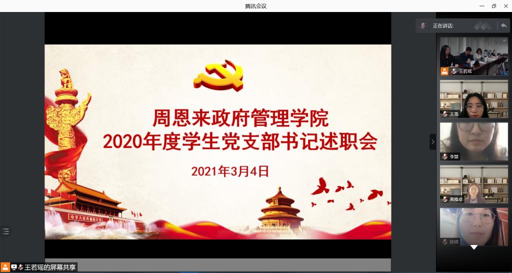 党委在线上召开2020年度学生党支部书记抓基层党建工作述职评议考核会。学院党委副书记兼副院长宋媛,学院团委书记杨晓颖,学院团委副书记陈佩其、王燕、郑宗鹏出席会议。学院团委专职干部王若瑶主持会议。
