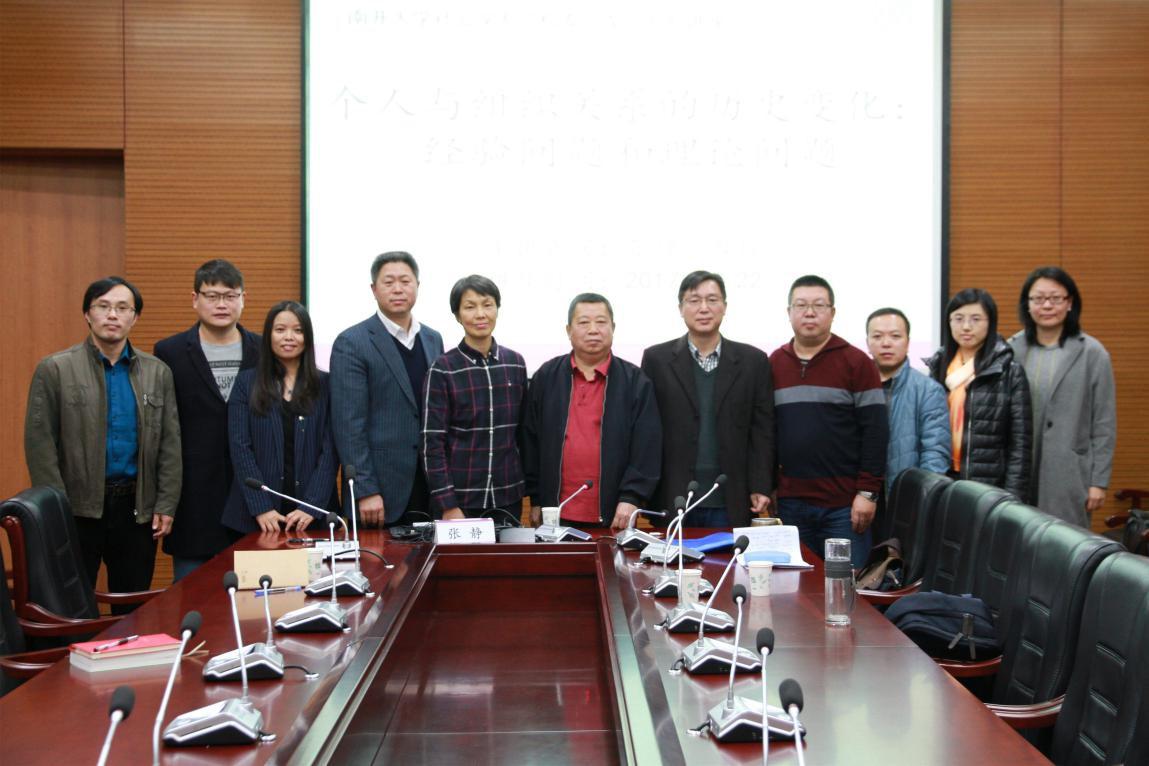 (通讯员:潘佩蓉)2017年11月22日下午,北京大学社会学系张静教授应邀做客南开社会学“校友沙龙”,进行了题为“个人与组织关系的历史变化:经验问题和理论问题”的讲座,吸引众多师生的积极参与。此次讲座由社会学系教授、副院长赵万里老师主持。