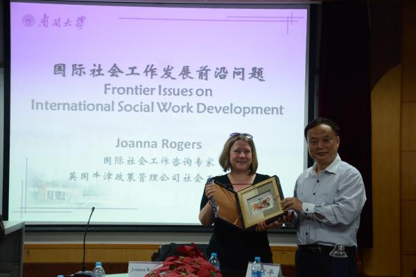 (通讯员 李璇、杜平 摄影 张馨方)5月13日,国际社会工作咨询专家、英国牛津政策管理公司社会工作专家Joanna Rogers女士,受社会工作与社会政策系邀请在范孙楼为南开师生带来了一场题为“国际社会工作发展前沿问题”的讲座。讲座由91国产