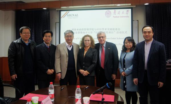 吴志成院长首先代表政府学院对中以学术交流会到访南开表示热烈欢迎,并表示我院十分重视以色列及中东问题的研究,将努力推动“以色列研究项目”顺利开展。魏凯丽女士向师生们介绍了SIGNAL项目的相关情况,并表示非常高兴与政府学院在以色列研究中进行合作。随后,双方在合作协议文本上签字,“以色列研究项目”顺利启动。
