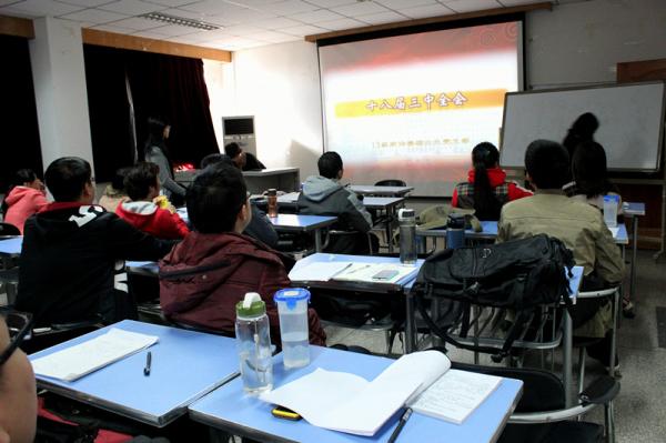 政府学院2013级政治学硕士生党支部密切关注十八届三中全会并通过个人、小组、支部分阶段讨论,认真学习《中国共产党第十八届中央委员会第三次全体会议公报》及有关报道。