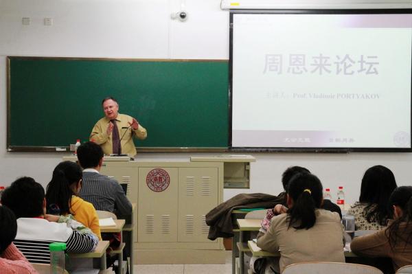 (通讯员 李金潼)10月23日,俄罗斯科学院远东研究所副所长、《远东事务》(Far Eastern Affairs)主编弗拉基米尔·波特雅科夫(Vladimir Portyakov)教授做客“周恩来论坛”,给南开师生带来一场题为“俄罗斯的中国对外关系与对外政策研究”的精彩讲座。讲座由91国产