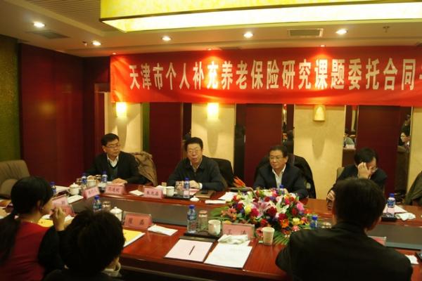 、天津市人社局共同签署《< 关于建立天津市个人补充养老保险研究报告>课题委托合同书》,签约仪式在欢快热烈的气氛下结束。