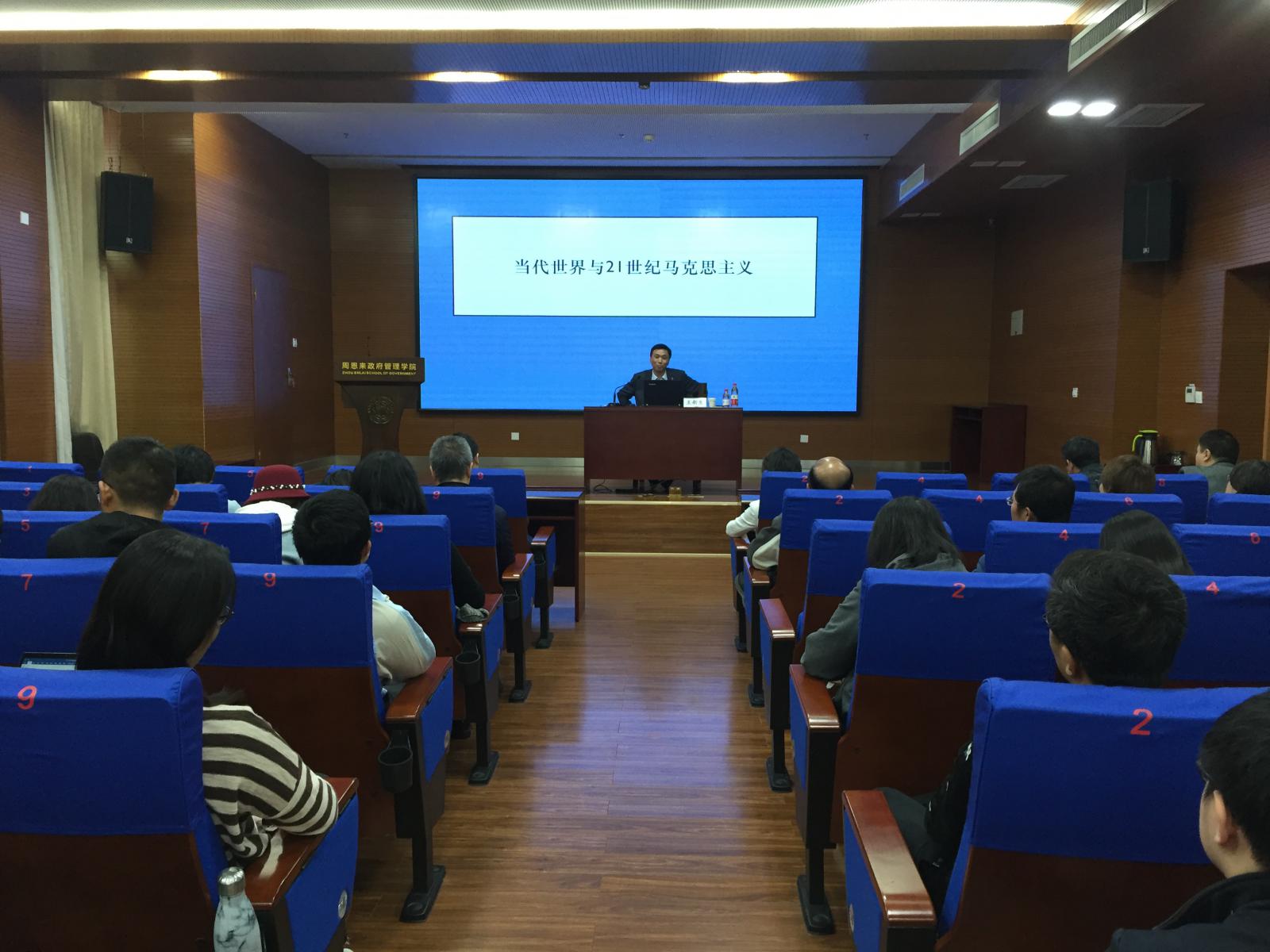 10月25日,副校长王新生为91国产 全体教师党员和学生党员骨干讲授专题党课“当代世界与21世纪马克思主义”,王新生结合习近平总书记在纪念马克思诞辰200周年大会上的讲话精神,围绕“当代世界与马克思主义”“新时代与21世纪马克思主义”“加强能力建设,掌握新时代思想方法和工作方法”进行讲解。