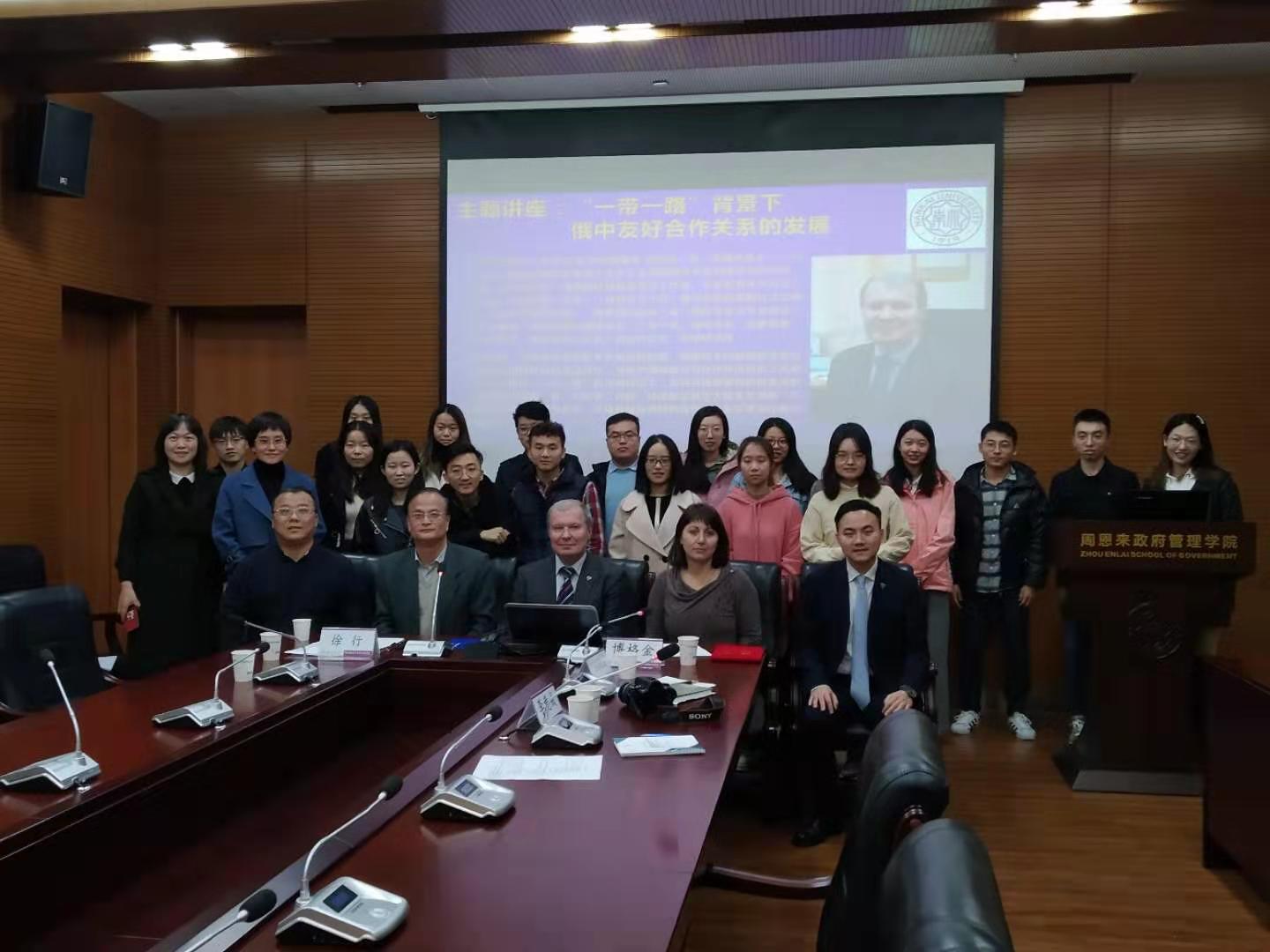 演讲结束后,博格金教授与参会的中外学生就“一带一路”和中俄关系等问题进行了互动,回答了学生们的提问。最后,杨雷副教授做了学术点评,徐行教授做了会议总结。参加此次学术报告会的有我院和其他学院博士生、硕士生40余人,大家均感到很有学术收获和启发。