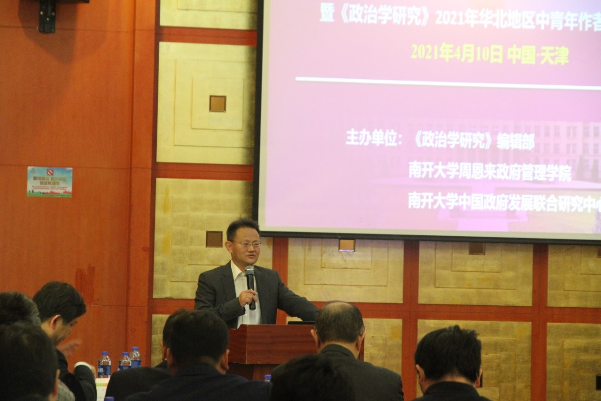 副校长王新生出席会议并致辞。来自主办单位以及清华大学、北京大学、中国人民大学、中共中央党校(国家行政学院)、中国社会科学院大学、中国政法大学、吉林大学、天津师范大学、天津商业大学、西南政法大学、中南财经政法大学、上海师范大学等高校,以及《新华文摘》《中国行政管理》《天津日报》《天津社会科学》等报刊的近40位学者参会。与会者包括中国政治学界4位教育部领军人才项目特聘教授和4位教育部领军人才项目青年学者。会议围绕构建中国特色政治学体系、国家理论与国家治理现代化、公共行政前沿、论文选题与刊物要求等议题进行了研讨。