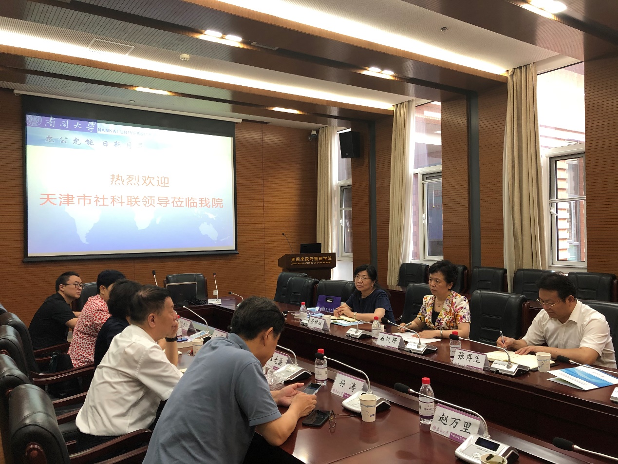 在听取了我院和两个智库中心的情况介绍后,天津市社科联党组成员、秘书长张再生就深入推动天津市社科发展、打造青年学者服务平台、优化青年学者考评环境等三个方面向我院征求意见与建议,吴晓林教授、张发林副教授等分别根据自己长期教学科研工作的体会一一作出回应。天津市社科联社会组织部部长殷雅丽就天津市行政管理学会、政治学学会、社会学学会和社会心理学会的下一步工作重点,以及《理论与现代化》杂志的高质量、高品质发展困境和解决思路等与我院几位老师进行了交流发言。