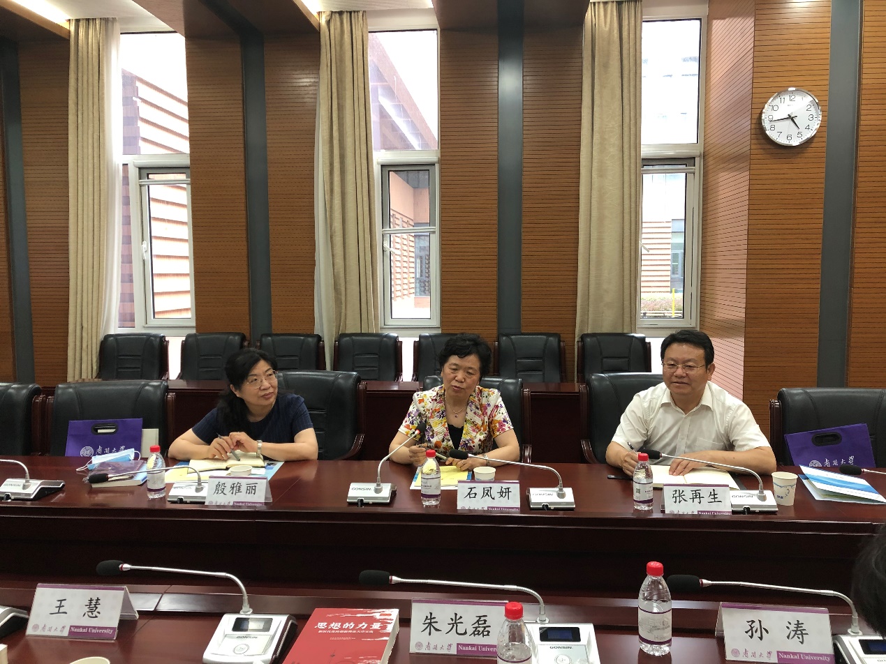 石凤妍书记对我院社科工作以及所取得的成果表示肯定。她强调,在习近平总书记在哲学社会科学工作座谈会上的重要讲话发表一周年之际,学院和智库中心的发展一定要牢记时代赋予的重任,体现哲学社会科学工作者的担当,不仅要鼓励老师们把论文写在祖国大地上,还要筑牢中国特色哲学社会工作体系。天津市社科联一定会为我市社科工作者做好服务,充分发挥专家学者与党和政府的桥梁纽带作用。也希望学院和智库中心能够大力支持2021年天津市“新时代青年学者论坛”以及“千名学者服务基层大调研”活动。