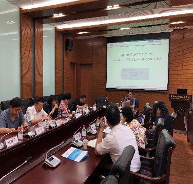 朱光磊教授对社科联领导的到来表示热烈欢迎,对学院和智库中心工作的支持与帮助表示感谢。接着朱教授介绍了学院多年来建设发展和教学科研中的亮点和特色。他指出,天津市社科联历来重视智库和研究基地建设,来我们这里考察调研,其实也是对我们传经送宝。最近几年来,学院和中心与社科联合作紧密,积极主动地为市政府和各区县经济社会发展服务,承接了多个委办局的决策服务项目。我院和中心的智库建设也在市领导的大力支持下,才能良好与快速的发展。随后,孙涛院长、赵万里副院长和张志红副教授分别就学院、马克思主义社会学研究中心、中国政府发展联合研究中心的发展建设历程、“思政”建设情况、标志性成果、人才队伍、管理体制机制和学术活动等方面作了汇报。
