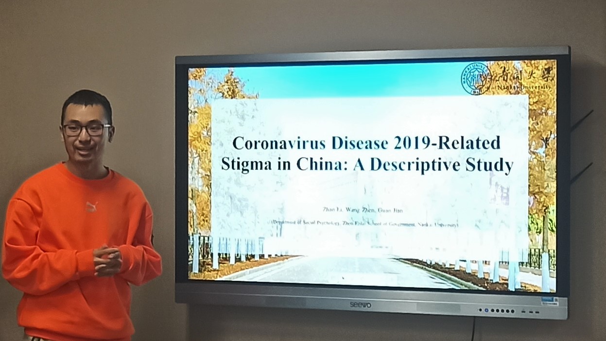 博士生王祯介绍了与新冠肺炎相关的污名现象,发现关于新冠康复者、其家人、朋友、邻居、前线医务人员和高风险地区人员的污名程度比SARS和肺结核的相关污名更严重,并且对于新冠疫情的了解与这种污名存在负相关关系。