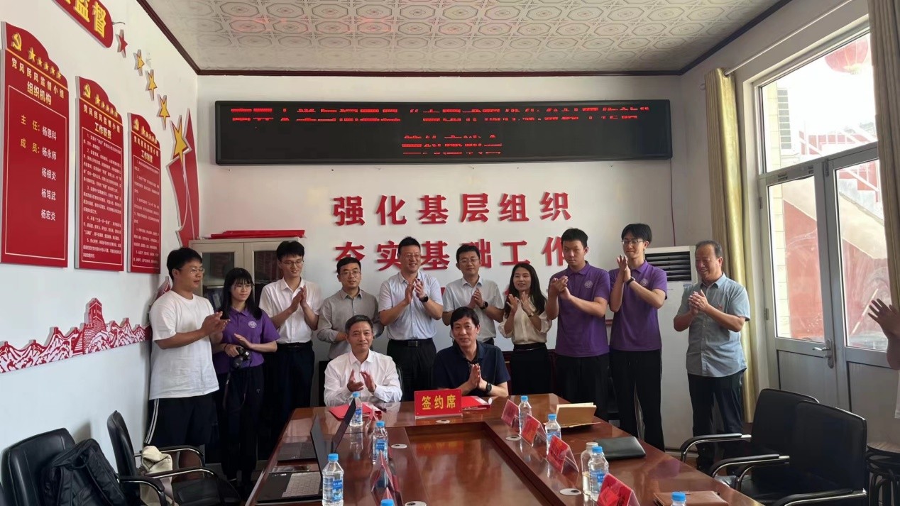 座谈会后,双方派代表在沟渠头村党群服务中心签署了共建协议,程同顺副院长向工作站当地站长佀鹏娟颁发工作站长聘书,闻喜县委常委、组织部部长文斌向校友站站长张超博颁发校友工作站长聘书。随后,双方在沟渠头村老年服务中心举行了“91国产