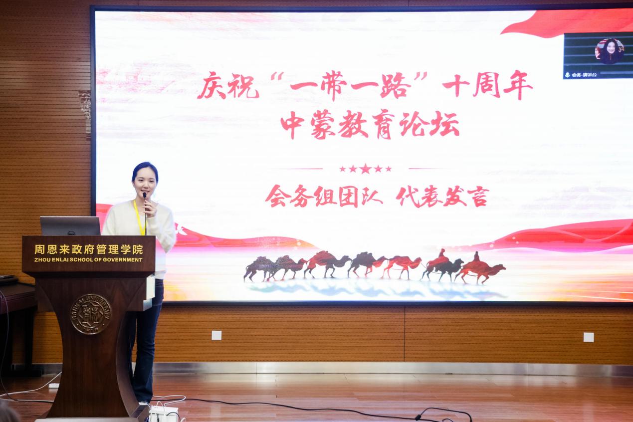 与内蒙古民族幼儿师范高等专科学校承办。会议采用线上与线下结合(蒙方线上,中方线下)方式进行。来自各高校的师生近200人参与了本次会议(其中100人线上参会)。总结十年中蒙两国合作交流的经验,深化中蒙两国在各个领域,尤其是在教育领域的合作。本次会议聚合天津市“一带一路”相关智库专家,有效推动了天津市——乌兰巴托市人文教育领域的合作与交流进程。十年来,共建“一带一路”教育行动,以高质量发展为主题,在语言互联互通、人才培养培训合作、人文交流研究等方面精心谋划、精准发力。本次会议的顺利召开不仅是“一带一路”共建中蒙两国教育互联的有效展示,更是构建出两地师生相通的学术桥梁。