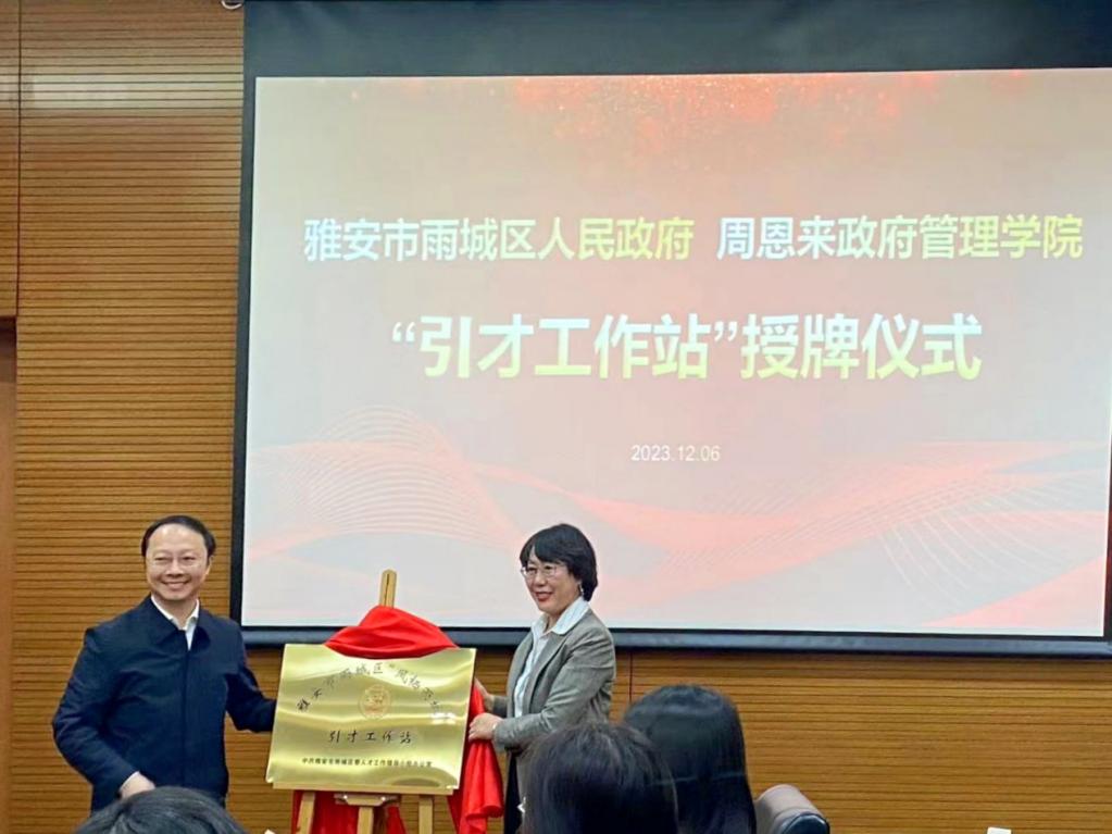 授予“风栖雨城”引才工作站。白涛部长表示,希望双方进一步拓宽长效深度合作机制,强化合作能力建设,加强人才资源共享,鼓励同学们到雨城区创业就业。