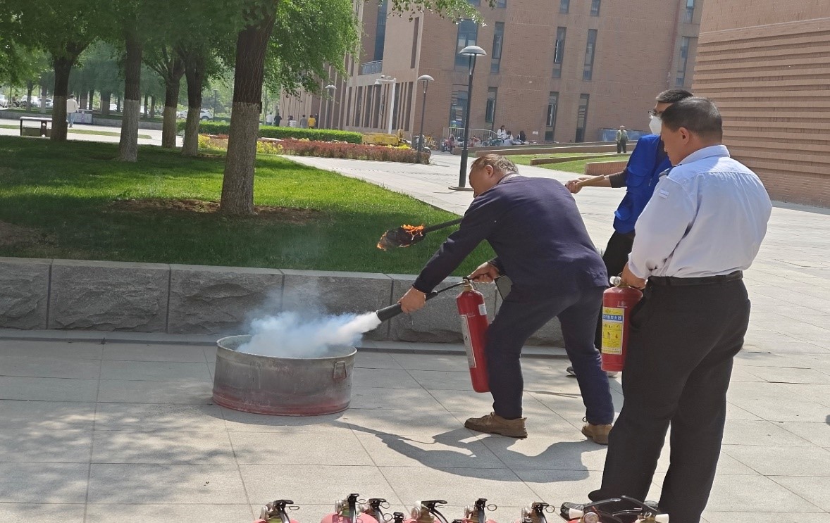 和社会学院联合学校保卫处在学院楼开展了消防演练。