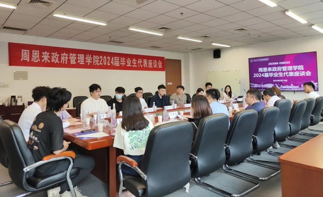 2024届毕业生代表座谈会在学院院楼324会议室举行。政府学院党委书记王慧,副院长张宁,学院团委办公室、综合办公室、教学科研办公室行政教师代表及毕业班辅导员与来自各专业的11名本硕博学生代表亲切交流,共同回顾成长历程、畅谈未来愿景。会议由学院团委书记王修彦主持。