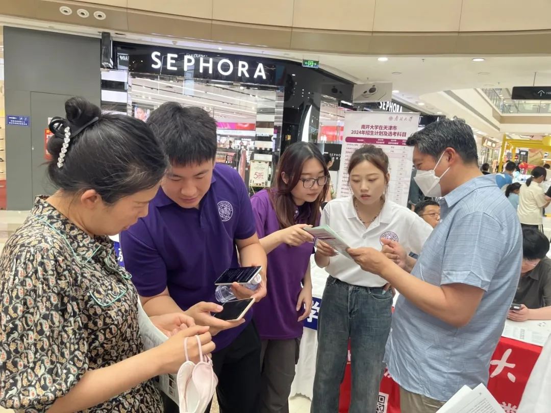 师生已多年赴塘沽一中开展招生工作,今年也主动对接、积极谋划,在学校、学院的支持下,以多种形式展开宣传。6月9日下午,政府学院师生还前往滨海万达广场开展招生咨询活动,为滨海考生和家长答疑解惑。高考出分在即,我院将继续运用多种宣传媒介,通过入校咨询、在线答疑、电话回访、校园开放日等多种方式,为考生和家长提供志愿填报咨询服务,将更多优秀学子迎入百年学府。