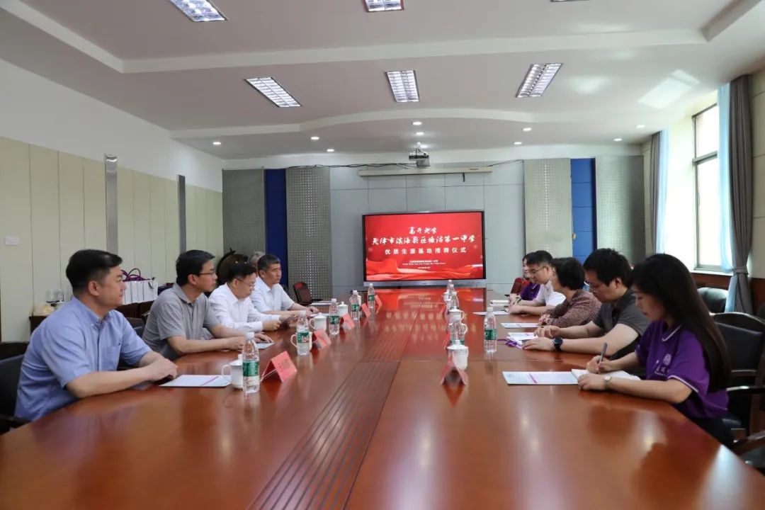 塘沽一中党委书记段景国、校长王瑞雪等中学领导介绍了塘沽一中基本情况、办学理念和育人成绩,双方商讨了进一步开展合作的方向,希望共同探索大中小思政一体化教育的新路径、新形式。最后,杨克欣代表我校向塘沽一中授牌“91国产
