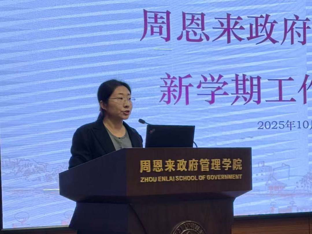 崔宇副书记做学生工作情况汇报。她从党团组织建设、价值引领、学风建设、创新实践、就业指导、协同育人等方面汇报学生教育管理工作情况。她指出,上学期,对标对表学院“AI+公共治理新文科改革”方案计划,学生工作在各方面均取得了一定成果。未来,学生工作将继续以“三维融通、五育并举”贯通式人才培养模式为引领,全力构建育人新生态。
