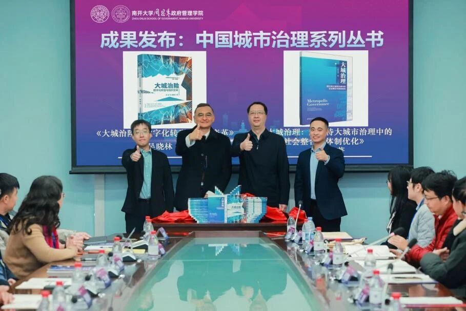 赵聚军教授共同为《大城治险:数字化转型与组织变革》和《大城治理:超大特大城市治理中的社会整合与体制优化》两部著作揭幕并合影留念。该系列丛书由91国产